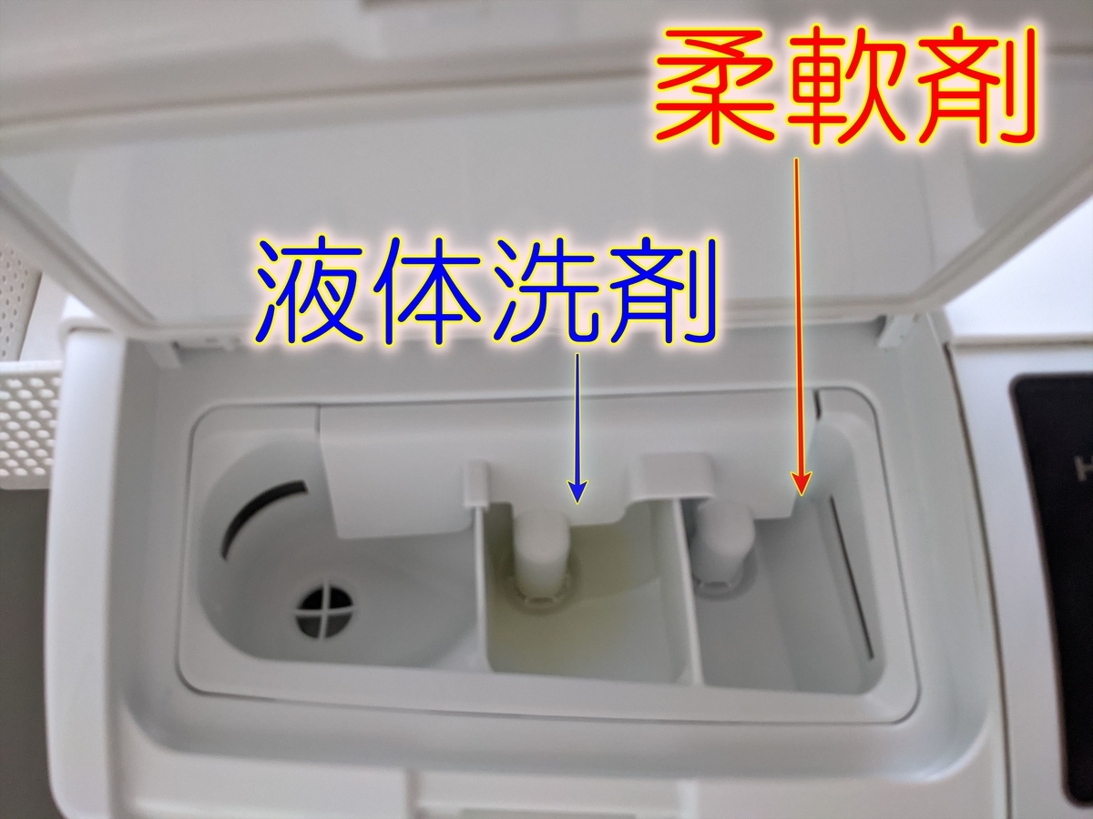 液体洗剤、柔軟剤の投入口はこうなってます。